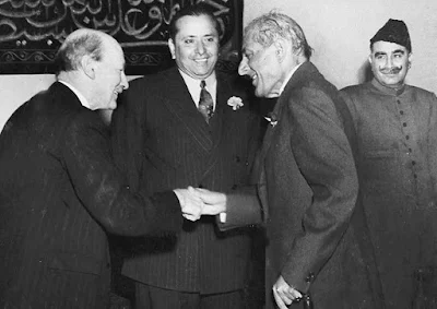 British Prime Minister Clement Attlee meets Governor General Ghulam Mohammad, Law, Food and Agriculture Minister Abdul Sattar Pirzada and Industries Minister Sardar Abdul Rab Nishtar, 1953