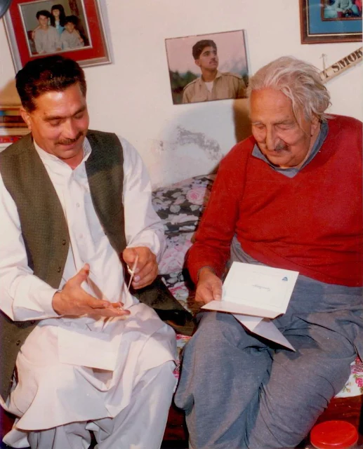Aside from a few poems of his youth and early manhood, Ghani Khan’s poetry, like his temperament, is anti-political. His poem collections include Panoos, Palwashay, De Panjray Chaghar, Kullryat and Latoon. He also wrote in English; his first book was The Pathans (1947). His only published work in Urdu was his book titled Khan Sahib (1994). with thanks and a lot of books