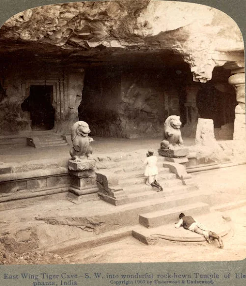East wind Tiger cave S. W into wonderful rock-hewn temple of Elephants India